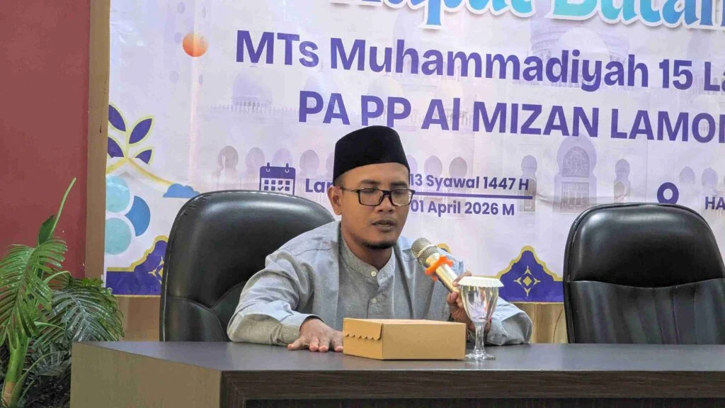 pwmu.co – Suasana hangat dan penuh kekeluargaan terasa di Hall Hotel El Resas Lamongan, Rabu (1/4/2026) siang. MTs Muhammadiyah 15 Al Mizan Lamongan menggelar kegiatan halalbihalal yang dirangkai dengan rapat bulanan, sebagai momentum mempererat ukhuwah sekaligus menguatkan kembali semangat kerja pasca Ramadan.