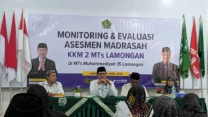 pwmu.co – Kegiatan Monitoring dan Evaluasi (Monev) Asesmen Madrasah KKM 2 MTs Lamongan dilaksanakan di MTs Muhammadiyah 15 Al Mizan Lamongan pada Senin (20/4/2026). Kegiatan ini menjadi bagian penting dalam memastikan pelaksanaan asesmen berjalan sesuai standar serta meningkatkan mutu pendidikan madrasah di wilayah tersebut.